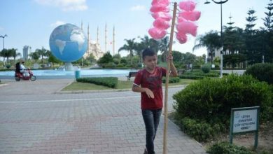 صحيفة تركية تسلط الضوء على طفل سوري يبيع ” غزل البنات ” ليتمكن من جمع تكاليف الذهاب إلى البحر مع شقيقه الأصغر