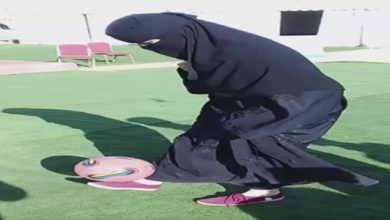 مهارة مذهلة لفتاة سعودية تلعب كرة القدم بالعباءة ( فيديو )