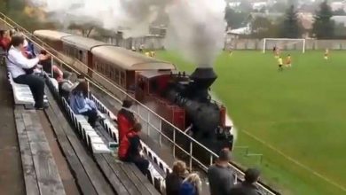 في سلوفاكيا .. ” قطار ” يمر من داخل ملعب خلال مباراة لكرة القدم ! ( فيديو )