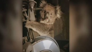 إنقاذ ” كوالا ” علق في إطار سيارة بأستراليا ( فيديو )