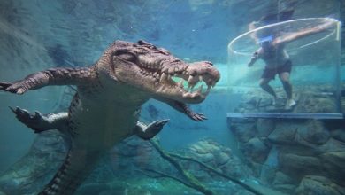 منتجع أسترالي يتيح للسياح فرصة اللعب مع تماسيح عملاقة تحت الماء