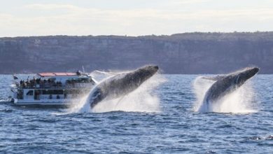 بالفيديو .. ” حوتان ” يقدمان عرضاً مدهشاً أمام قارب سياحي