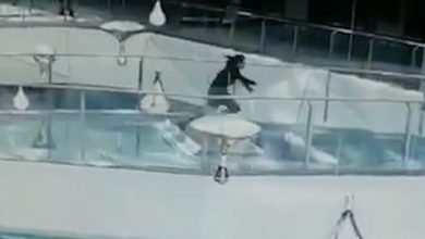 امرأة صينية تنجو بأعجوبة إثر سقوطها في حوض لأسماك القرش ( فيديو )