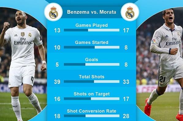 حصيلة ألفارو موراتا تهدد مكانة كريم بن زيمة في هجوم ريال مدريد