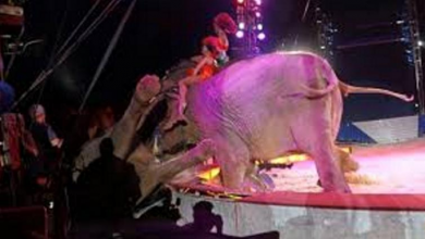 ألمانيا : فيل يتعثر أثناء عرض في سيرك و يقع على المتفرجين ! ( فيديو )