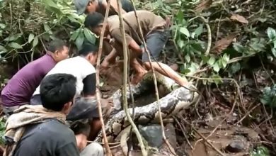 في أندونيسيا .. رجل يصارع ثعباناً ضخماً يصل طوله إلى 8 أمتار ( فيديو )