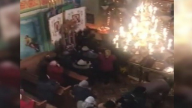 شجار حامي الوطيس بين رجال دين في كنيسة أوكرانية ! ( فيديو )