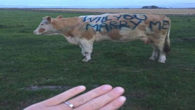 رجل إسكتلندي يستعين ببقرة في طلب يد حبيبته للزواج !