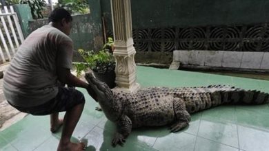 عائلة اندونيسية تربي تمساحاً مفترساً كحيوان أليف ! ( فيديو )