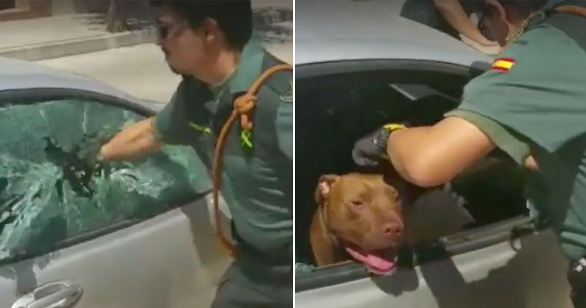 بالفيديو .. شرطي إسباني ينقذ ” كلب ” من الموت داخل سيارة تحت حرارة مرتفعة