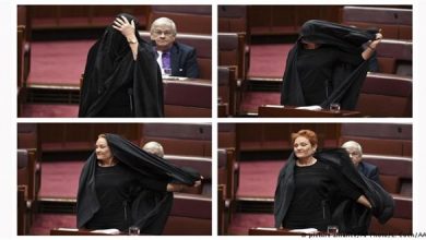 نائبة أسترالية مناهضة للإسلام و اللاجئين ترتدي ” البرقع ” داخل البرلمان !