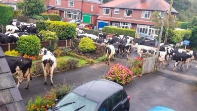 قطيع ضخم من ” الأبقار ” يقتحم قرية بريطانية !