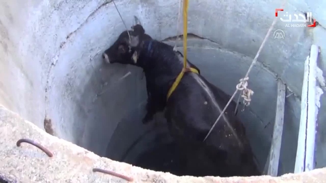 بالفيديو .. إنقاذ بقرة سقطت في بئر ماء عمقه 11 متراً في تركيا