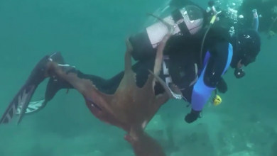 أخطبوط ضخم يحاول إغراق غطاس ( فيديو )