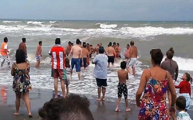 بالفيديو .. سلسلة بشرية تنقذ ثلاثة أشخاص من الغرق في الأرجنتين