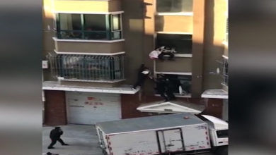 صيني ينقذ طفلاً ألقته والدته من شرفة المنزل ( فيديو )