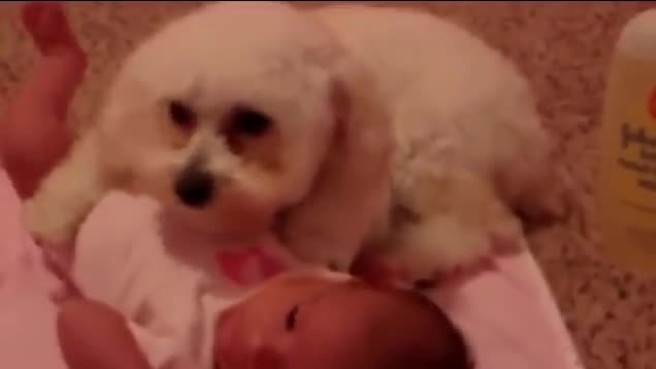 بالفيديو .. ” كلب ” يحمي طفلاً رضيعاً من ” مجفف شعر “