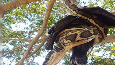 بالفيديو .. صراع مميت بين ثعبان و خفاش