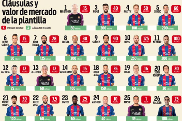 عناصر فريق برشلونة الحالية هي الأغلى في تاريخ النادي