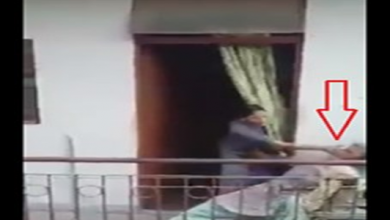 بالفيديو .. امرأة هندية تعتدي على أمها المسنة بشرفة منزلها