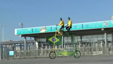 مشجعان برازيليان يبتكران دراجة هوائية مميزة في شوارع روستوف ( فيديو )
