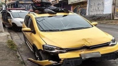 شاب برازيلي يتصل بالإسعاف من سطح السيارة التي صدمته ! ( فيديو )