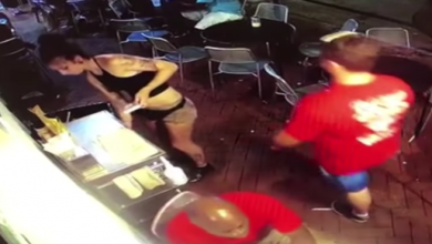 رد فعل مفاجئ من نادلة ضد شاب تحرش بها ( فيديو )