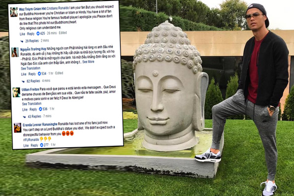 رونالدو يثير غضب معجبيه بعد وضع قدمه على تمثال ” بوذا “