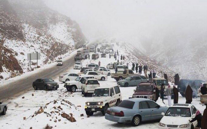 في حدث نادر .. الثلوج تغطي جبال السعودية