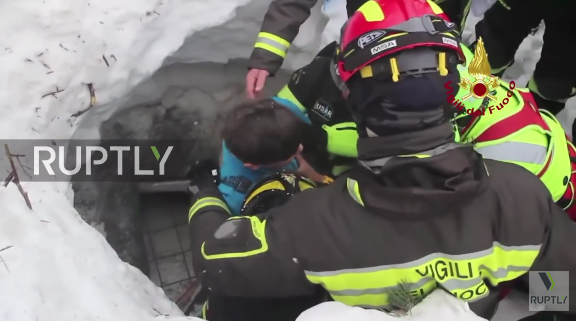 إيطاليا : إنقاذ 10 أشخاص علقوا تحت انهيار ثلجي 3 أيام ( فيديو )