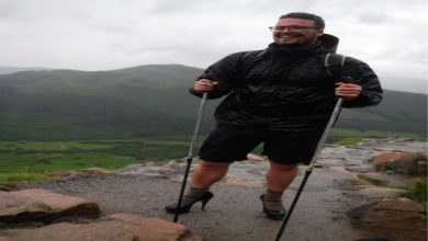 شاب يتسلق أعلى جبل في بريطانيا بـ ” الكعب العالي ” !