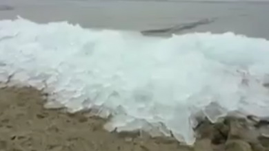 روسيا : أمواج البحر تتحول إلى قطع جليدية حال وصولها للشاطئ بفعل الطقس البارد ( فيديو )