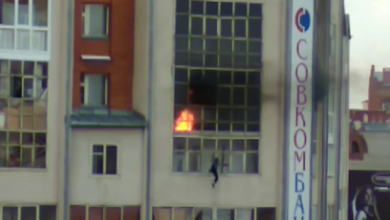 لحظة قفز طفل روسي من الطابق السابع هرباً من الحريق ( فيديو )