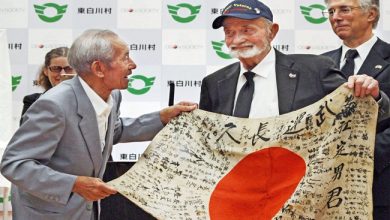 أميركي يعيد علماً لأسرة جندي ياباني قتل قبل 72 عاماً في الحرب العالمية الثانية ( فيديو )