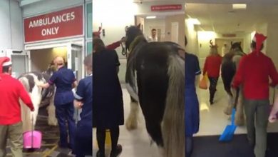 حصان يزور فتاة في مستشفى ببريطانيا ! ( فيديو )