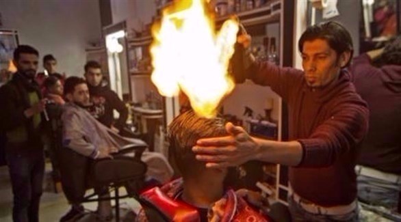 بالفيديو .. حلاق يستخدم النار لقص شعر زبائنه