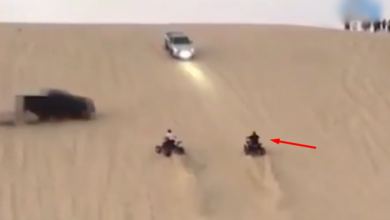 قطر : طفل يقود شاحنة و يدهس راكب دراجة ( فيديو )