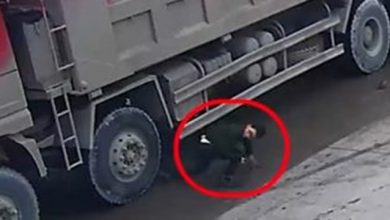 نجاة طفلين صينيين بأعجوبة من أسفل عجلات شاحنة ضخمة ( فيديو )