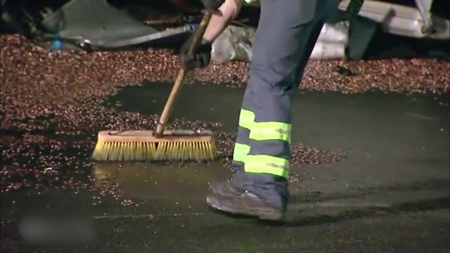أمريكا : حمولة طنين من القطع النقدية تتسبب في إغلاق طريق سريع ( فيديو )