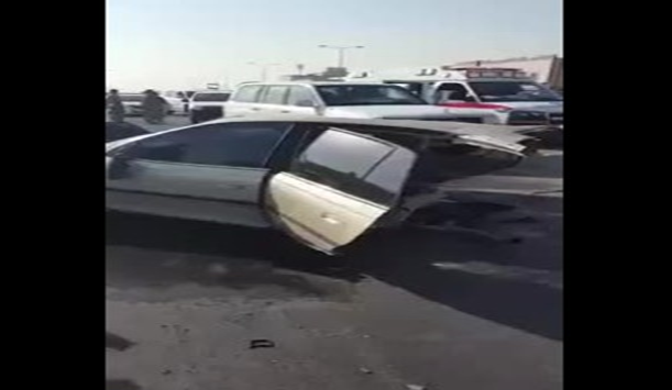 في السعودية .. السرعة الجنونية تشطر سيارة إلى نصفين ( فيديو )
