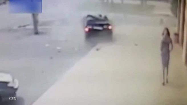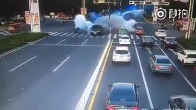 بالفيديو .. انفجار سيارة مسرعة على مفترق طرق في الصين