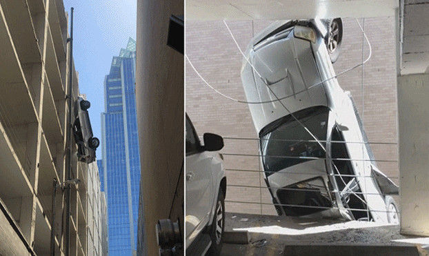 بالفيديو .. نجاة شاب أمريكي من الموت بمعجزة بعد سقوط سيارته من الطابق التاسع