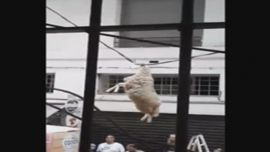 بالفيديو .. ” خروف ” معلق بأسلاك كهرباء بين الأرض و السماء !