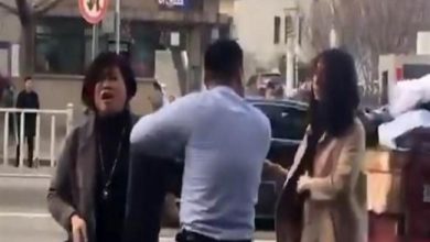رجل صيني يتعرض للضرب على يد زوجته و عشيقته في الشارع