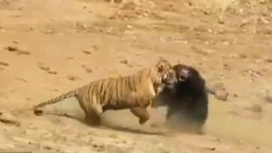 معركة شرسة بين نمر و دبة في الهند ( فيديو )