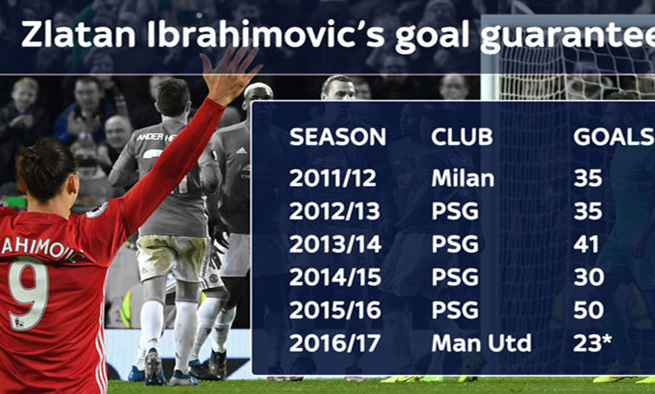 أرقام إبراهيموفيتش مع مانشستر يونايتد تمنحه لقب ” سلطان الأولد ترافورد “