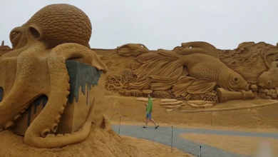 بالفيديو .. فنانون دنماركيون يحولون 13 ألف طن من الرمال إلى منحوتات بحرية