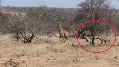 ضباع ” جبانة ” تهاجم زرافة مصابة .. و النهاية سعيدة ! ( فيديو )
