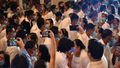 قبلات ” من وراء الكمامات ” في حفل زفاف جماعي بالفلبين