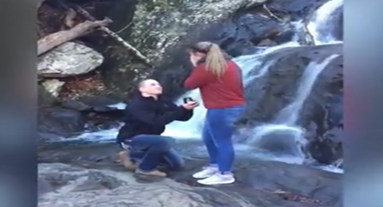 بالفيديو .. عرض زواج ينتهي بسقوط خاتم الزفاف في الشلال